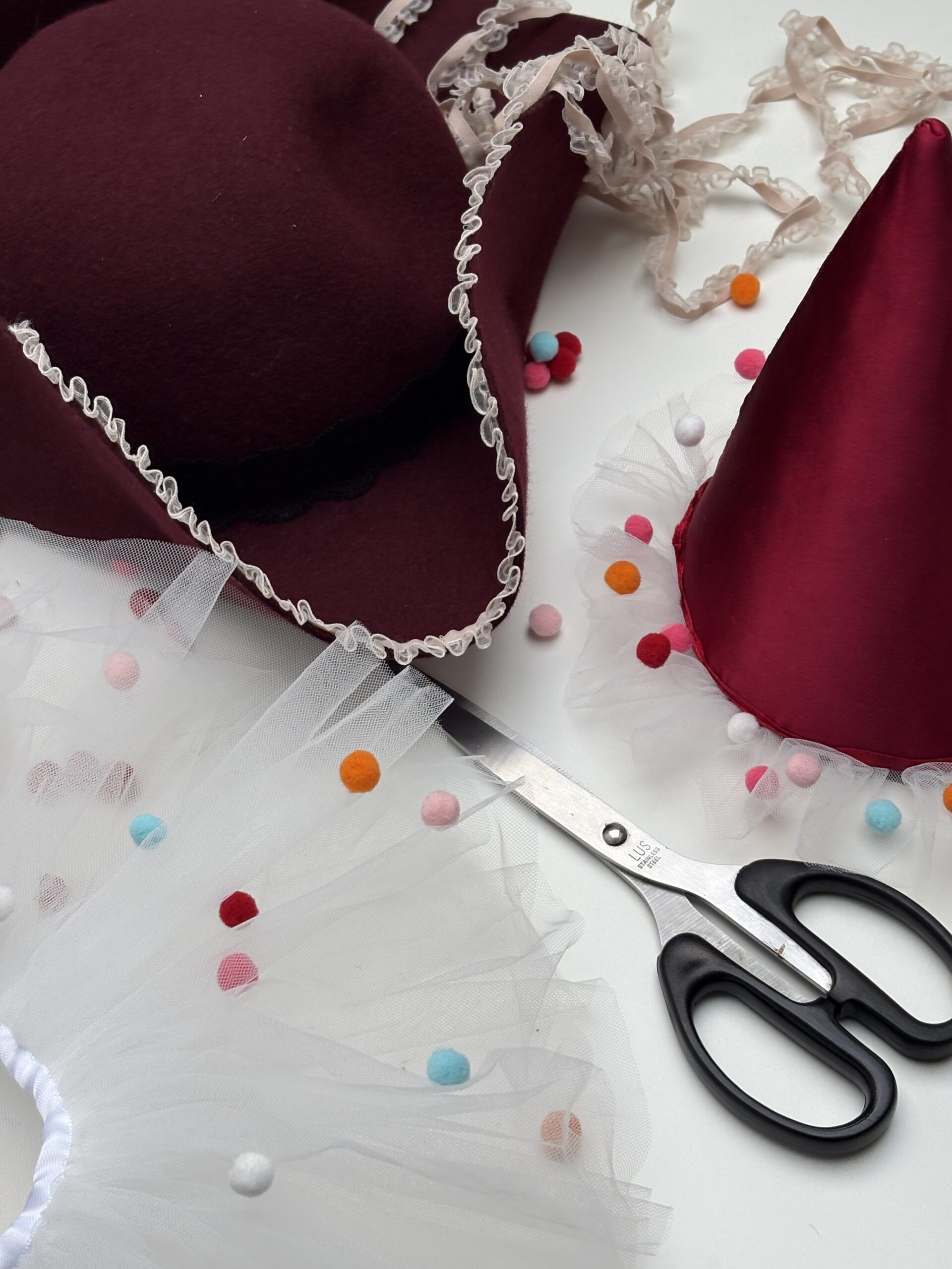 Bei der Buchung wählst du bereits dein Karnevals-Thema: Als Clown gestaltest du einen voluminösen Tüllkragen plus passenden Partyhut. Als Pirat verwandelst du einen schlichten Filzhut in einen einzigartigen Dreispitz.